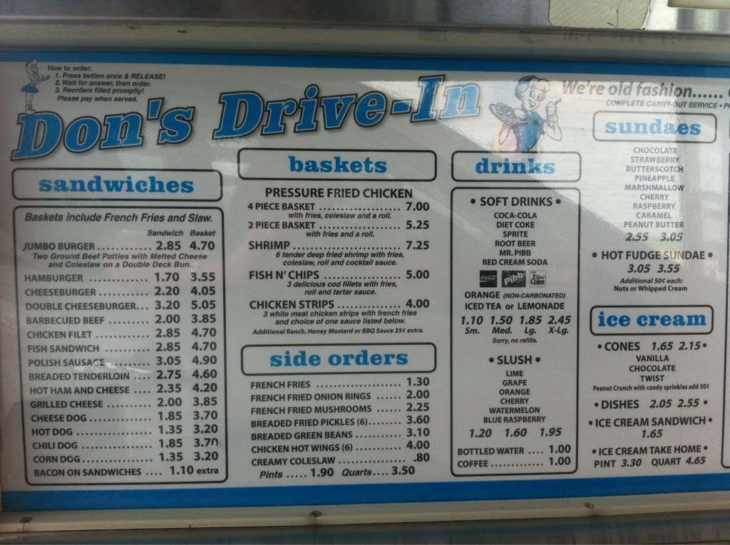 Dons Drive In address Dons Drive In location. A selection of delicious lemonade chocolate shake or milkshakes is offered to guests. Our current owner took over in 1980 and not much has changed since then.